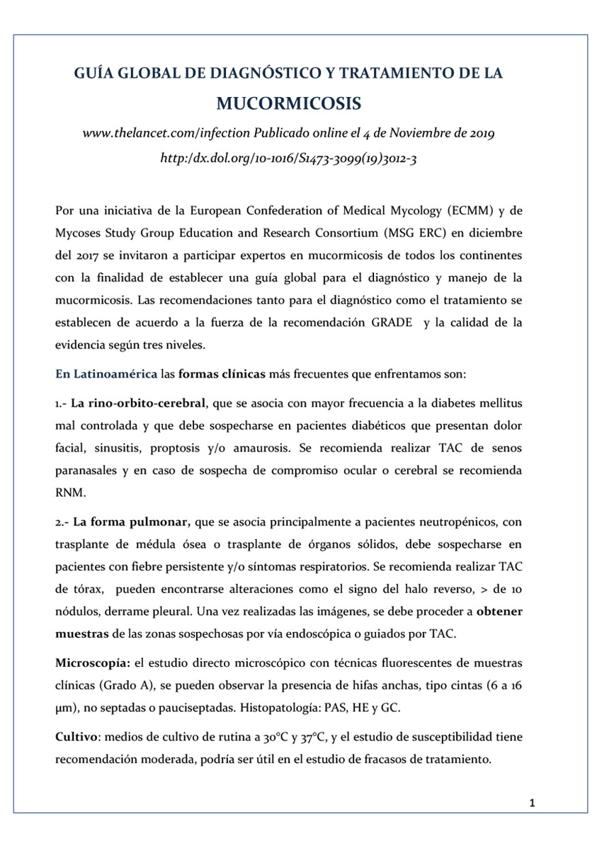 Guía Global de Diagnóstico y Tratamiento de la Mucormicosis